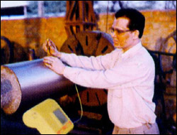 Rolls are tailormade products and therefore need careful production planning. Rolls are cast in chiller mould with a controlled allowance for contraction and machining. It is therefore necessary to have a mould of the desired size. A new mould is required to be made if oue is not available. After obtaining a order from a customer and a drawing for the reequired rolls, a method drawing for casting is made, according to which the mould for casting of the rolls is made. Melting of metal is carried out in any of the several induction melting units available as per requirement of metels. The melting charges are selected as per required chemistry of metal. Upon melting, samples are analyzed and necessary adjustments for various alloying elements made through additions of Ferro-alloys. Fracture tests are made and temperature measured to control the same through Immersion Pyrometeres. Metal is poured in the moulds through geared ladles of various capacities in pre-determined time to ensure clean metal in the mould.